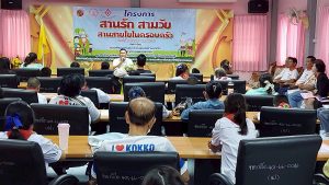 17 กรกฎาคม 2568 งานส่งเสริมสวัสดิการสังคม กองสวัสดิการสังคม เทศบาลตำบลกกโก ร่วมกับศูนย์พัฒนาครอบครัวในชุมชนตำบลกกโก ดำเนินการจัดโครงการสานรัก สามวัย สานสายใยในครอบครัว ณ ศูนย์การเรียนรู้และสัมมนาเทศบาลตำบลกกโก โดยมีนายก่อภณ ฮุ้นสกุล นายกเทศมนตรีตำบลกกโก เป็นประธานกล่าวเปิดโครงการฯ พร้อมทั้งกล่าวถึงความสำคัญของสถาบันครอบครัว เพื่อสร้างจิตสำนึกให้เกิดความรัก ความผูกพัน สร้างครอบครัวที่อบอุ่นและเข้มแข็ง