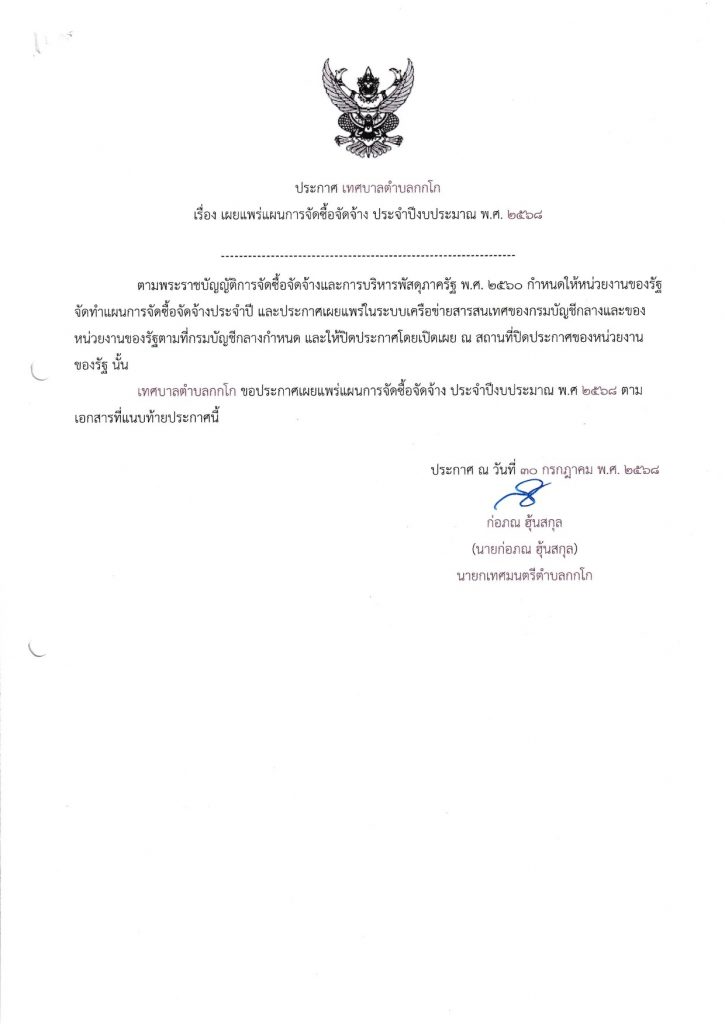 ดาวน์โหลดเอกสาร ประกาศเผยแพร่ โครงการก่อร้างถนนคอนกรีตเสริมเหล็กพร้อมวางท่อระบายน้ำ และบ่อพัก สายทางจากบ้านนางบุญหนัก หมู่ที่ 6 ตำบลกกโก