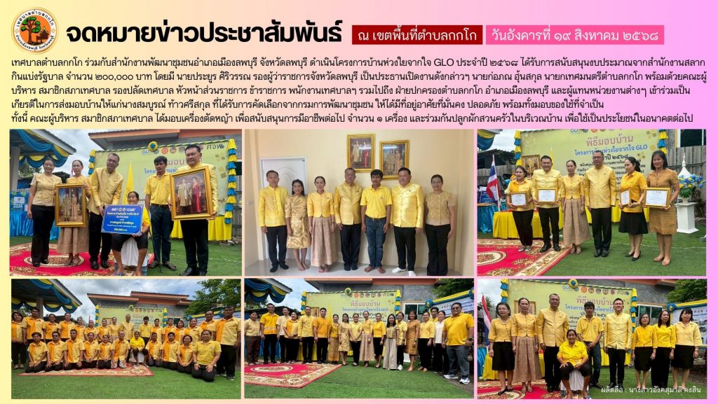 ทต.กกโก ร่วมกับ สนง.พัฒนาชุมชนอำเภอเมืองลพบุรี จ.ลพบุรี ส่งมอบบ้าน โครงการบ้านห่วงใยจากใจ GLO ประจำปี 2568
