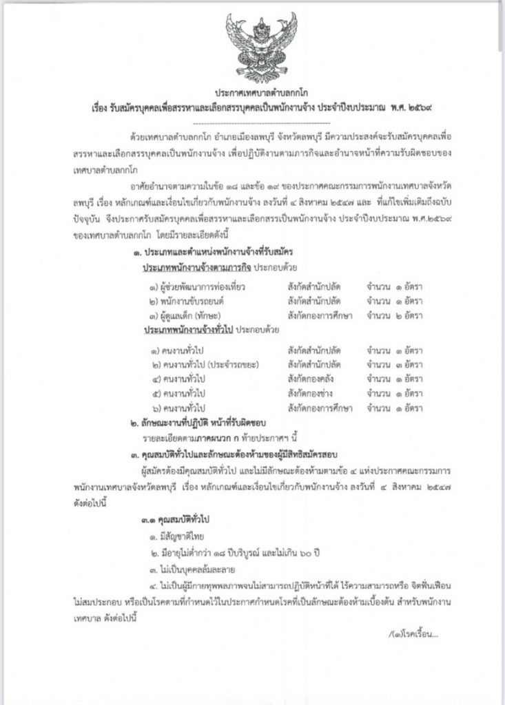 ประกาศเทศบาลตำบลกกโกรับสมัครบุคคลเพื่อสรรหาและเลือกสรรบุคคลเป็นพนักงานจ้าง ประจำปีงบประมาณ พ.ศ 2569