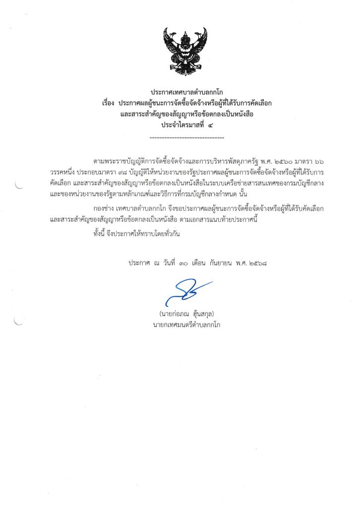 ดาวน์โหลดเอกสาร ประกาศผลผู้ชนะการจัดซื้อจัดจ้างหรือผู้ได้รับการคัดเลือก และสาระสำคัญของสัญญาหรือข้อตกลงเป็นหนังสือ ประจำไตรมาสที่ 4