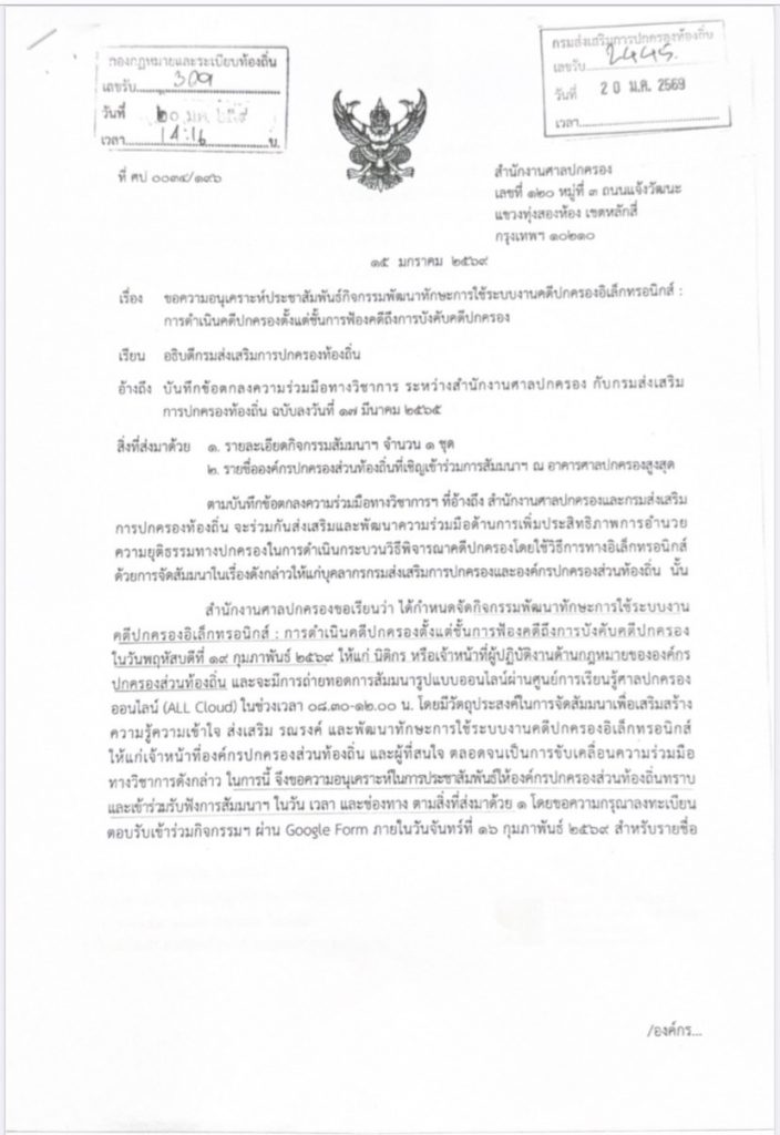 ประชาสัมพันธ์กิจกรรมพัฒนาทักษะการใช้ระบบงานคดีปกครองอิเล็กทรอนิกส์