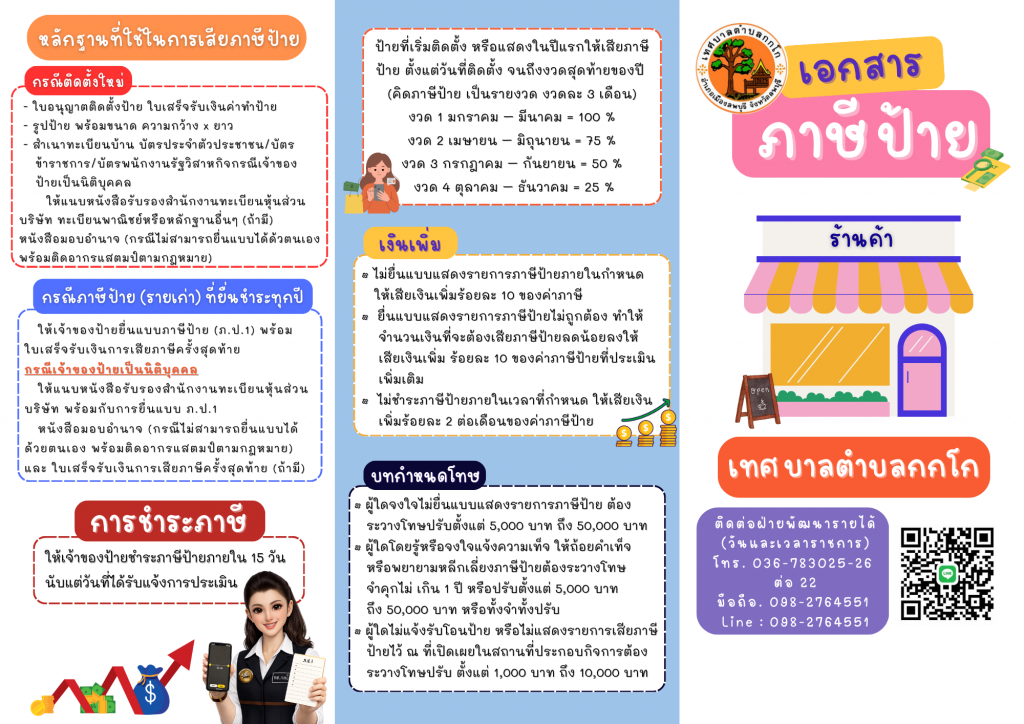 ประชาสัมพันธ์ เรื่อง ภาษีป้าย จาก ฝ่ายพัฒนารายได้ กองคลัง ทต.กกโก