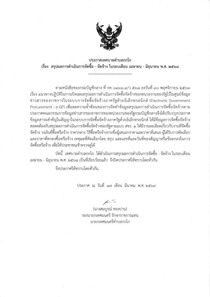 สรุปผลการจัดซื้อจัดจ้าง เดือน มิถุนายน พ.ศ. 2568