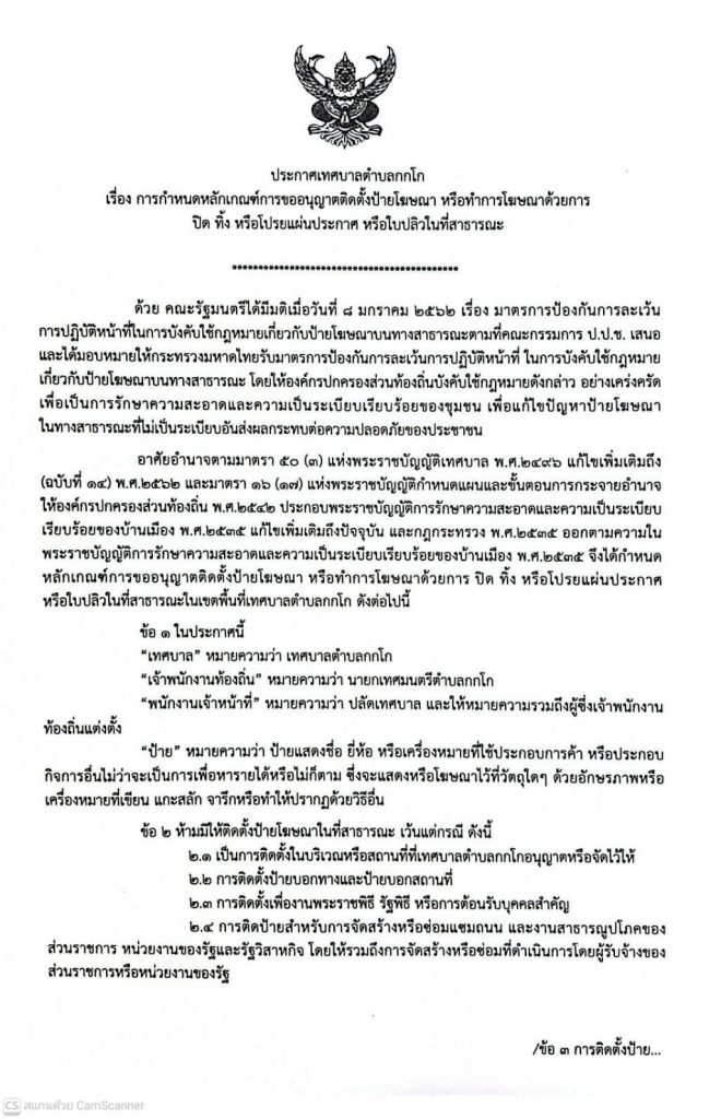 การกำหนดอัตราค่าธรรมเนียมและข้อกำหนดในการขออนุญาตโฆษณาโดยการใช้เครื่องขยายเสียง ในเขตพื้นที่เทศบาลตำบลกกโก