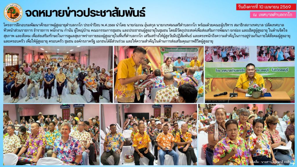 โครงการฝึกอบรมพัฒนาศักยภาพผู้สูงอายุตำบลกกโก ประจำปีงบประมาณ พ.ศ. 2569