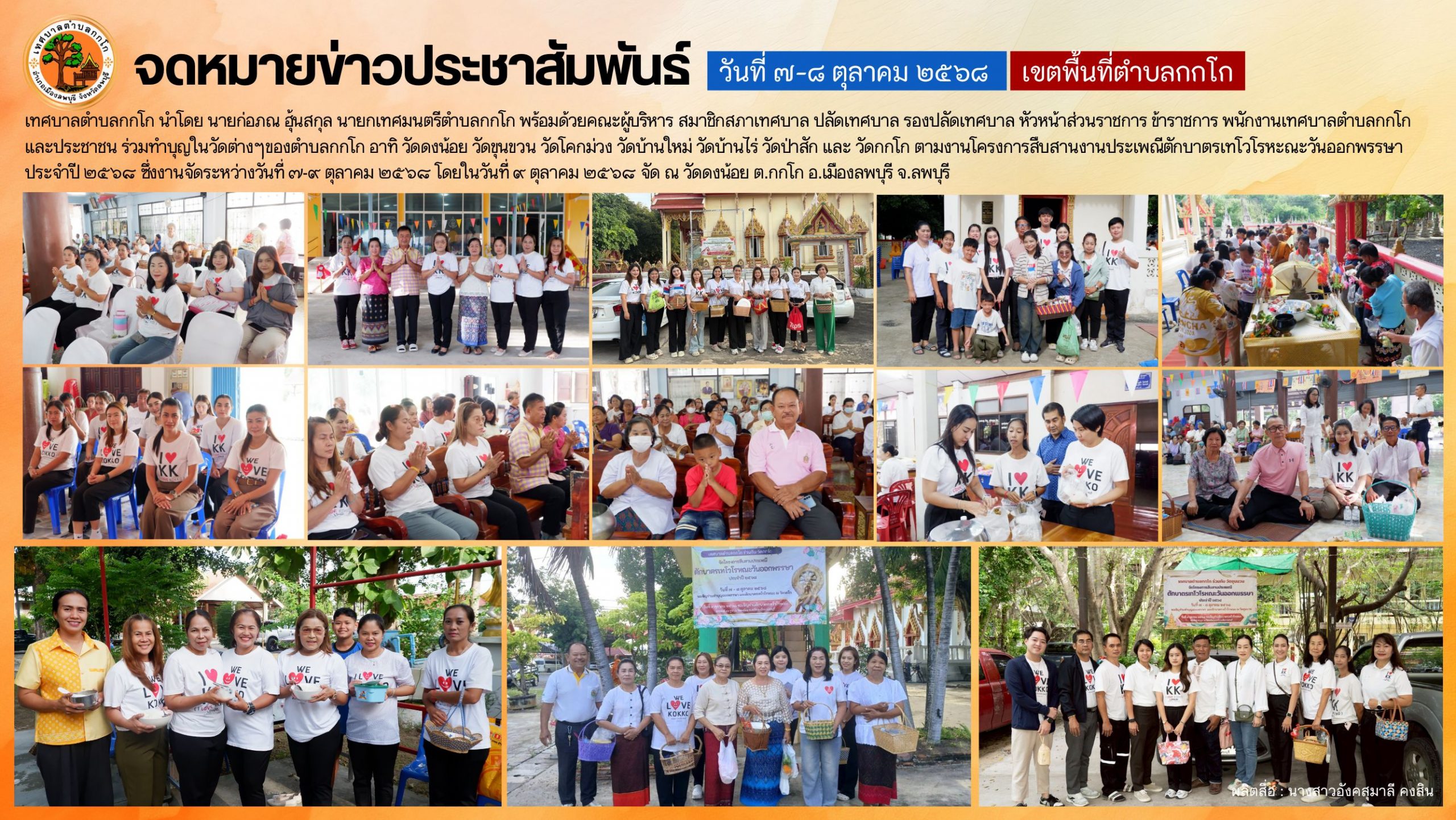 เทศบาลตำบลกกโก ร่วมทำบุญในวัดต่างๆของตำบลกกโก ตามงานโครงการสืบสานงานประเพณีตักบาตรเทโวโรหะณะวันออกพรรษา 2568