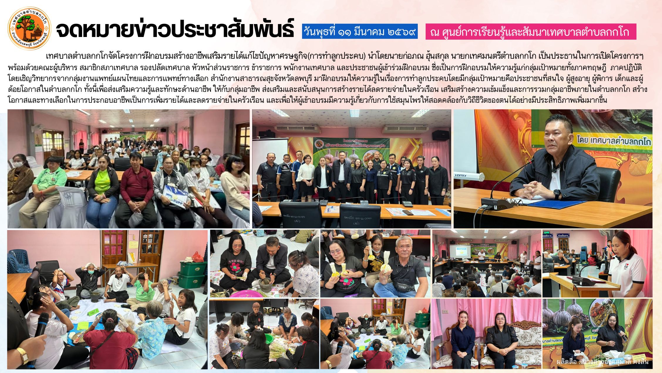 โครงการฝึกอบรมสร้างอาชีพเสริมรายได้แก้ไขปัญหาศรษฐกิจ(การทำลูกประคบสมุนไพร)